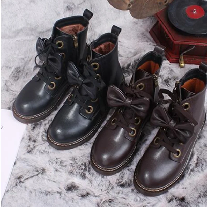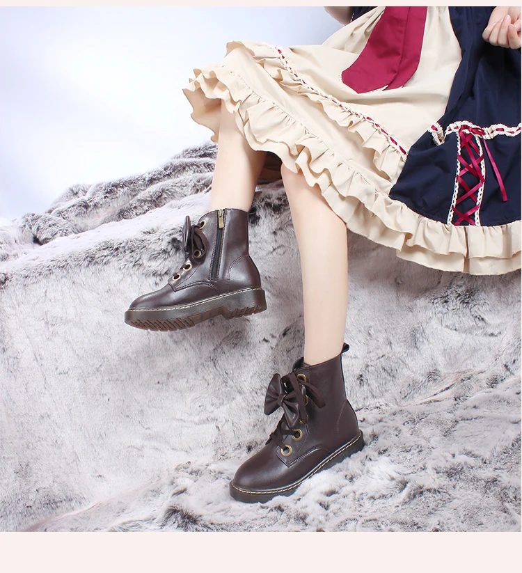 Винтажные женские Ботинки martin с круглым носком и шнуровкой; Милые ботинки в стиле «лолита» в английском стиле; Обувь kawaii