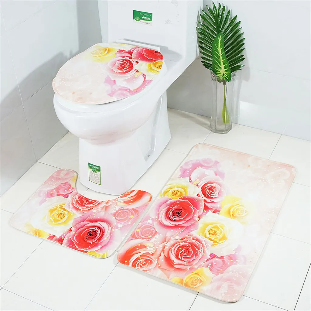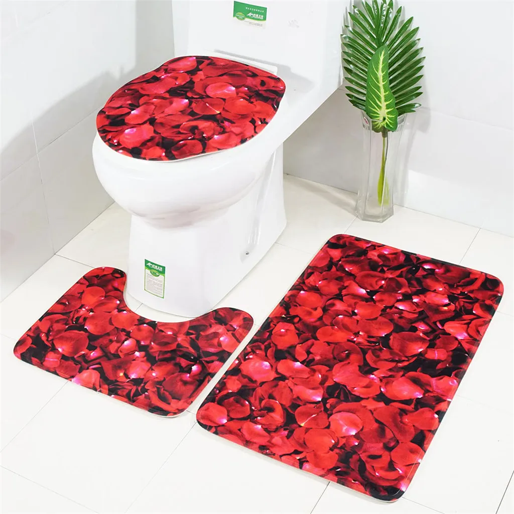 Набор ковриков для ванной комнаты с принтом лепестков роз