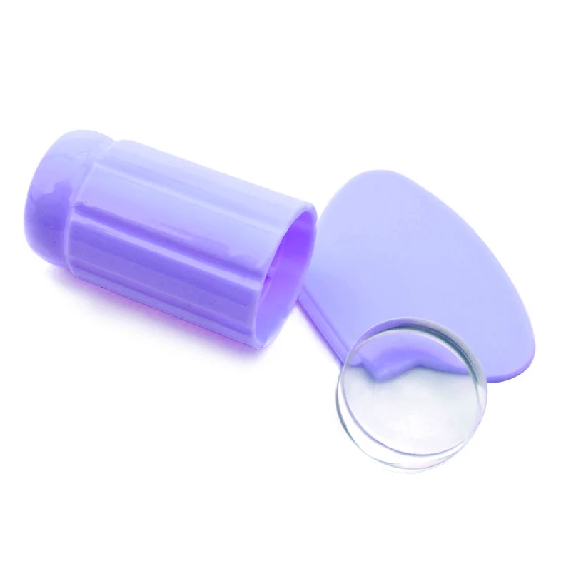 Прозрачный гвоздь штамп желе силиконовый штамп головка с прозрачной крышкой фиолетовая ручка ногтей штемпель для тиснения скребок с рисунком шаблон инструменты