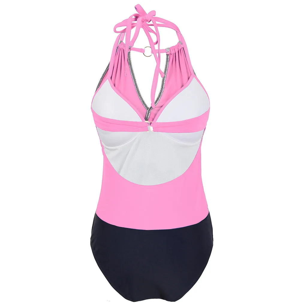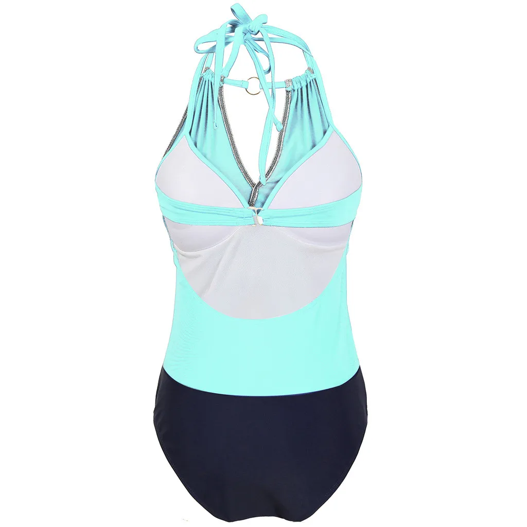 Сексуальный купальник для женщин, купальник, кружевное бикини с лямкой на шее, бирюзовый и цветочный узор, монокини, цельный купальный костюм с открытой спиной, пляжная одежда