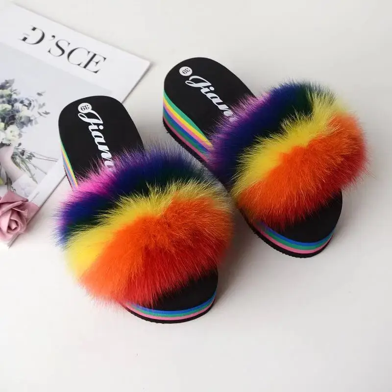 Женские пушистые меховые шлепанцы на радужной подошве; Модные меховые пляжные вьетнамки для путешествий; Женские плюшевые меховые шлепанцы на танкетке; Мягкая обувь на платформе Материал верха: Лисий мех Материал подошвы: Высококачественная эва Функции: нескользящие/износостойкие/дышащие/противоскользящие Модные элементы: мех/Лисий мех/натуральный мех Для женщин пушистые шлепанцы Плюшевые Вьетнамки с мехом; Шлепанцы Милые пушистые меховые Тапочки Если вам нужно больше цветов, пожалуйста, свяжитесь со мной...