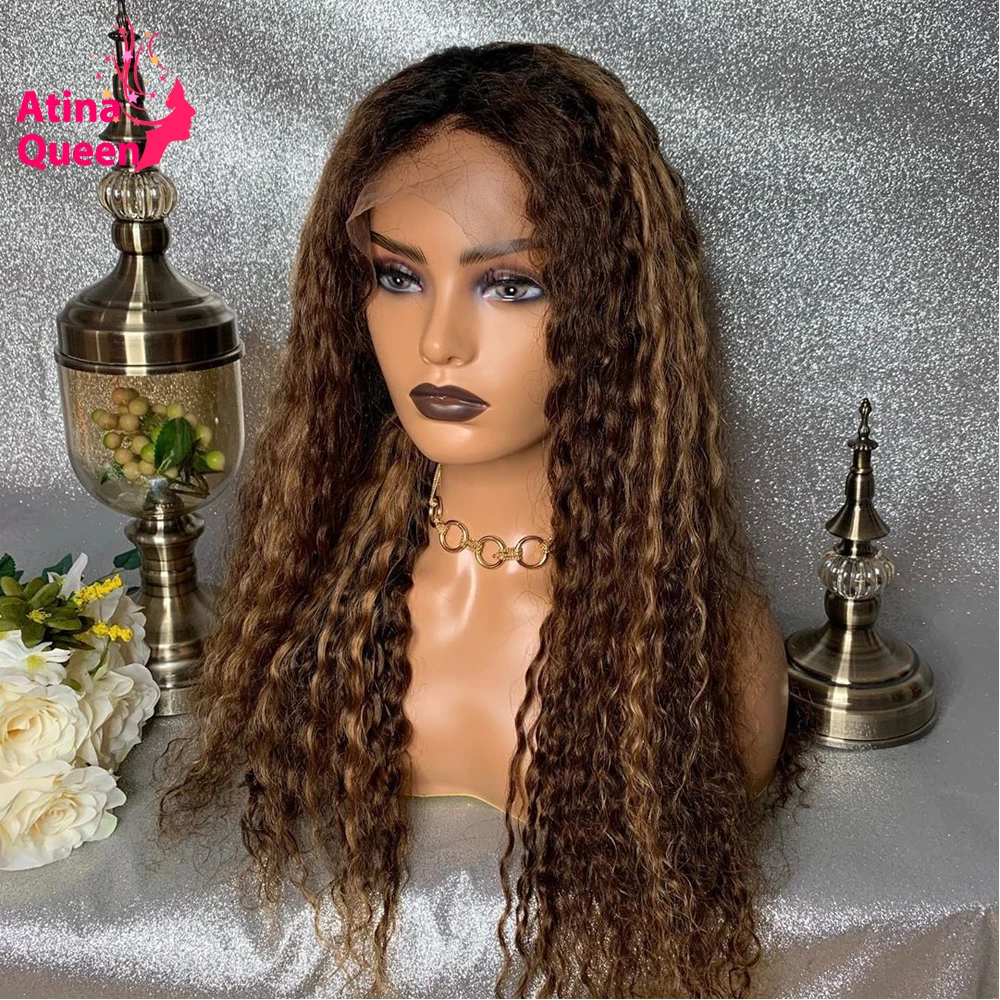 Remy Brown and Blonde Highlight Full Lace Wig Black Women Water Wave Invisible Hd Transparent Lace Wig Preplucked Lace Front Wig