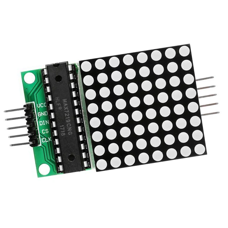 Рабочее напряжение модуля: 5 В, Размер модуля: 5 см X 3,2 см в ширину X 1,5 см в высоту Один модуль может управлять общим катодом 8x8 матрицы, материал FR4 + электронные компоненты Отверстия с четырьмя винтами, диаметр 3 мм, могут быть зафиксированы с помощью наших шпилек M3 для легкой установки Модули с входными и выходными интерфейсами, поддержка каскадных нескольких модулей