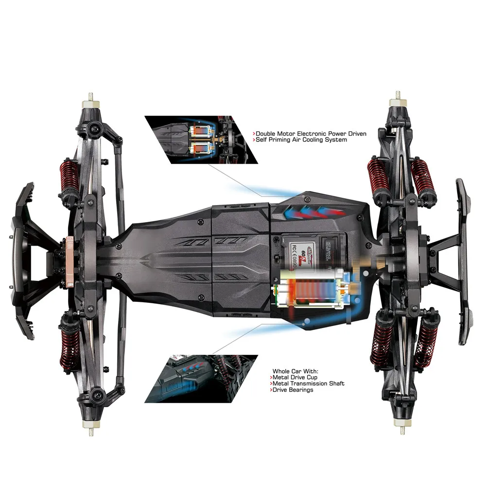 [Двойные двигатели, прочные Powerful】, оснащенный двумя моторами, максимальная скорость до 46 км/ч (30 миль/ч), это Скоростной автомобиль с дистанционным управлением, вездеходный автомобиль с большой скоростью Опыт. [Быстрая и сверхмощная скорость] Wheels】поставляется с агрессивным протектором от мощных шин, вы можете И для внедорожных, и для дорожных условий, с сверхпрочной противоскользящей поверхностью Колеса. 【 4-х колесных дисков RC Truck】-четыре колеса, состоящие из отскакивающих пружинных материалов, которые дают Поддержка неожиданные падения и нестабильно поверхности Земли, Вам нравится игрушечный автомобиль в течение более длительного периода времени; Четырехколесный привод и полный Управление четырьмя направлениями также позволяет выполнять такие действия, как гонки вперед или назад И поворот влево или вправо. [Большой размер и металл Боди-1:10 больших размеров и полноразмерный супербыстрый монстр-грузовик, Цельнометаллический герметичный шариковый подшипник специально разработан для жестких условий эксплуатации И любых прочных дорог. Со стальным корпусом, конструкция вала и Независимо стимулированная ударопрочная система, которая уменьшает воздействие на неровность Дисков. 【 2,4 ГГц Системы и улучшенный Управление Experience】 --- с радиусом действия до 80 м/262 футов и 2,4 ГГц настоятельно Рулевое управление и дроссельная заслонка, вы можете работать с друзьями или детьми В то же время, профессиональный радиопередатчик Радио Дистанционный пульт автомобиль Приносит вам превосходный опыт.Описание: