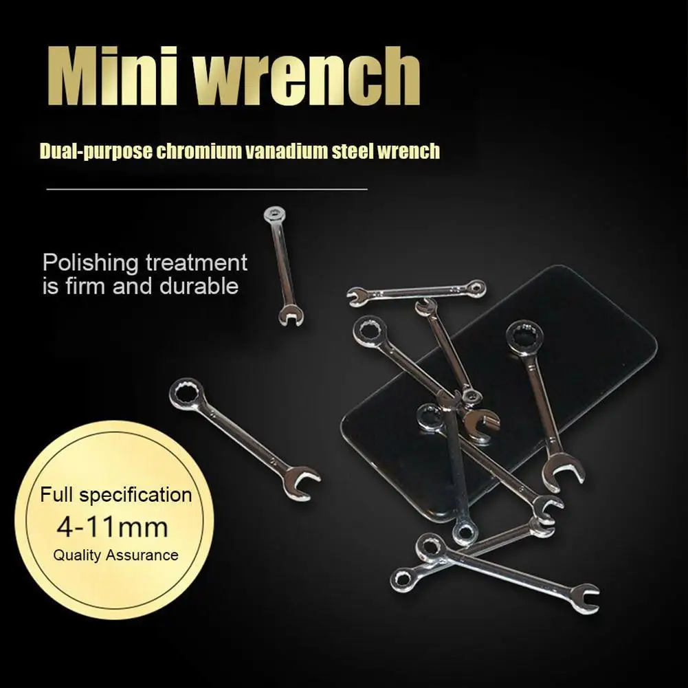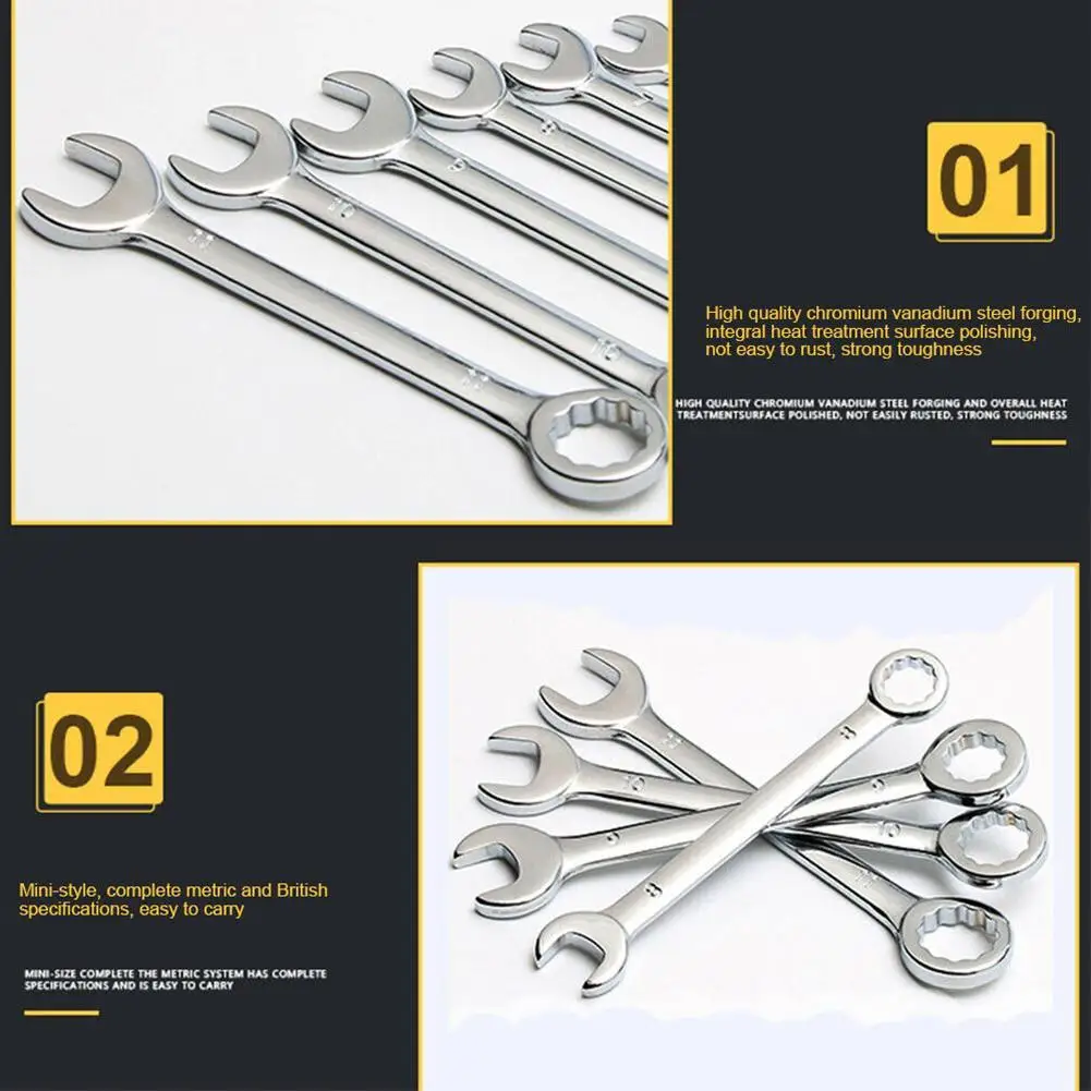 Описание: 100% новый высококачественный инновационный дизайн, элегантный внешний вид, высокое качество и долговечность. Набор из 10 штук, охватывающих широкий спектр применений. Изготовлен из хромированной ванадиевой стали, зеркальная чистота и устойчивость к коррозии. Небольшой размер для удобного использования в плотных помещениях. Полный спектр продуктов для автомобильного, промышленного и домашнего использования. Цвет как показано 10 профессиональных мини комбинированных ключей: 4 мм, 4,5 мм, 5 мм, 5,5 мм, 6 мм, 7 мм, 8 мм, 9 мм, 10 мм, 11 мм. Использование: для ваших нужд. Упаковка: 10 х гаечный ключ
