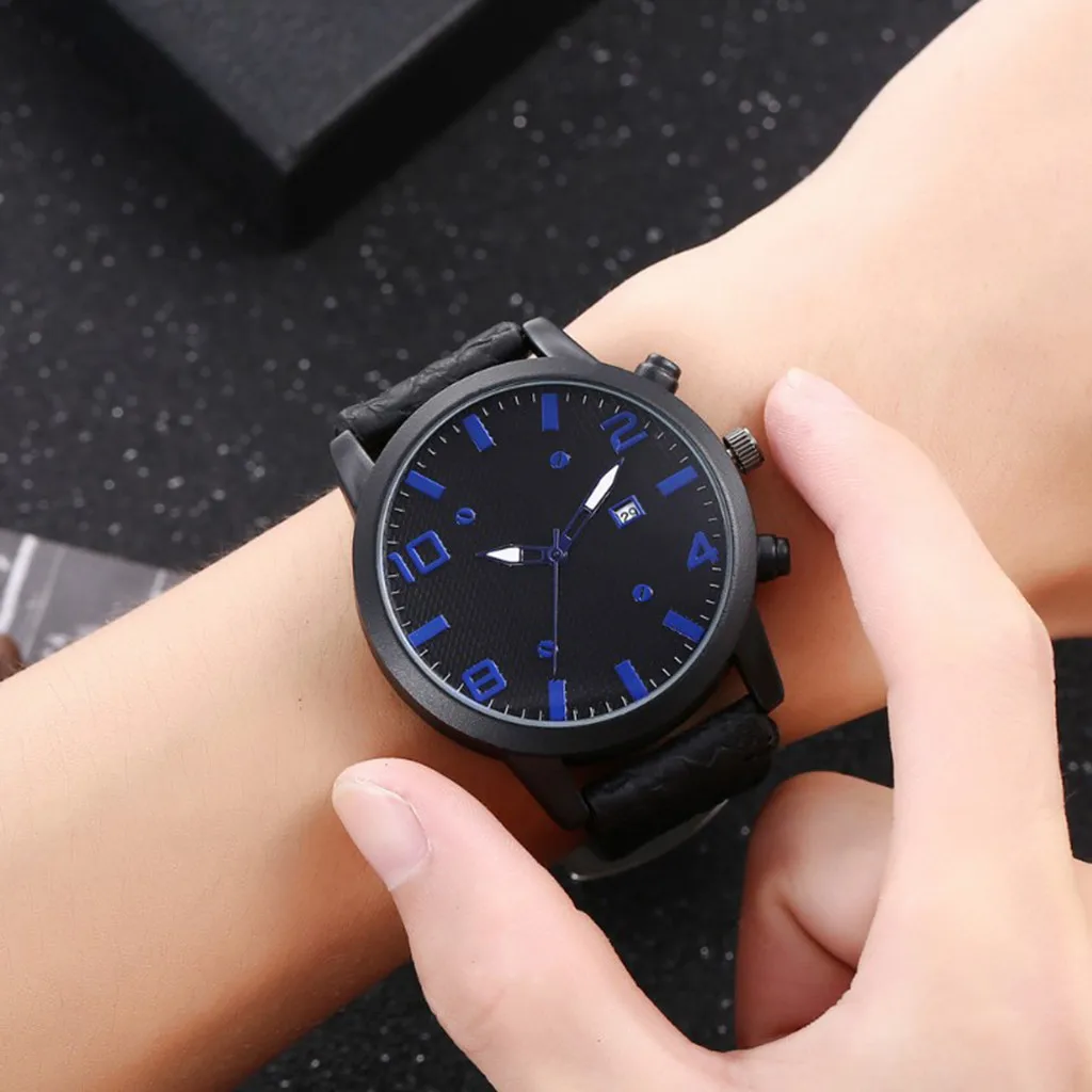 Мужские повседневные часы с одним календарем и заклепками, деловые мужские кварцевые часы