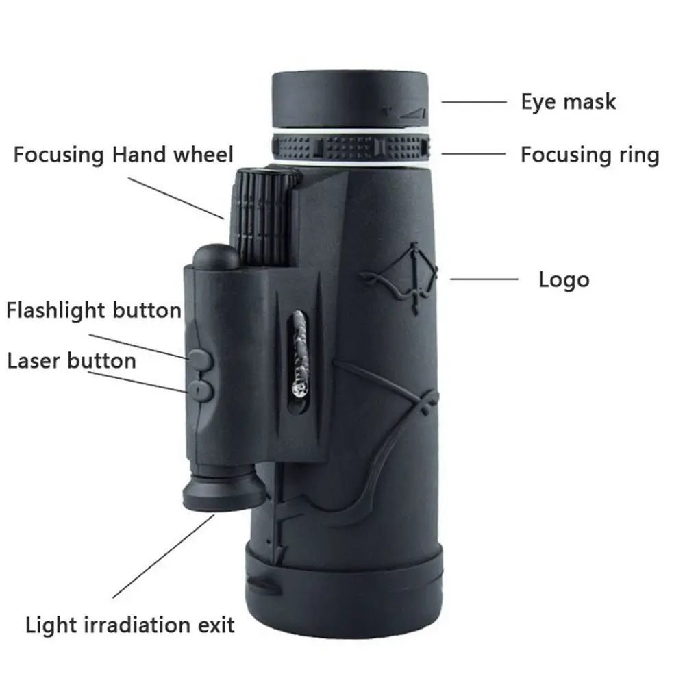 -50x60 мм HD монокуляр: коэффициент увеличения 50 x. Более четкое изображение, объективная линза имеет более яркое изображение, используя большой светильник, обеспечивающий полную мощность.
