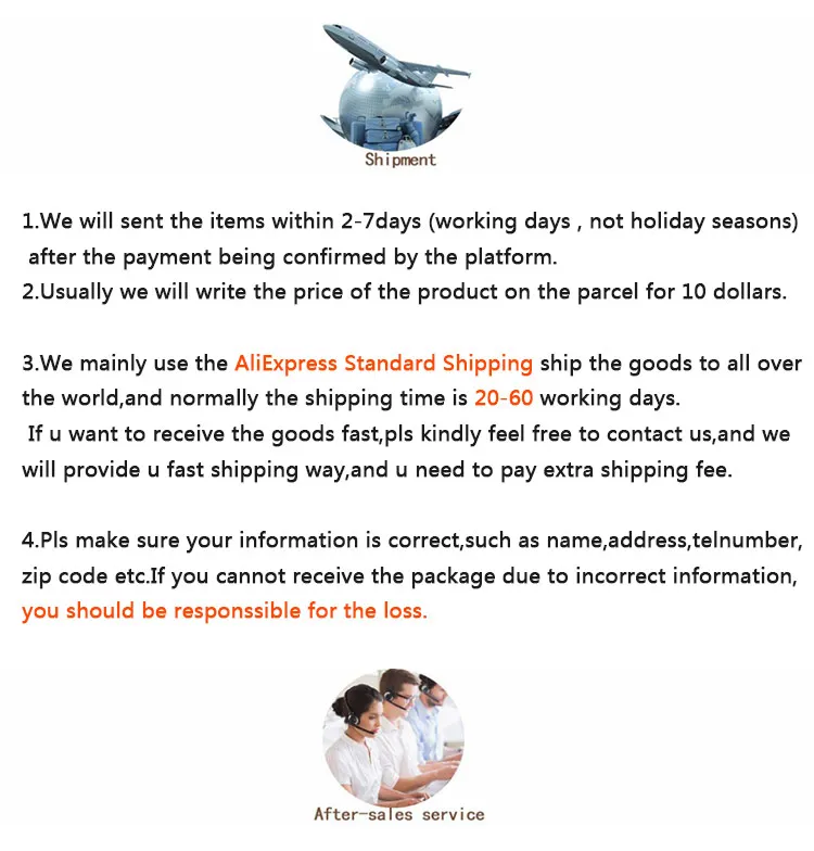 1. О таможенных пошлинах: Цена заказа включает только цену товаров и фрахта, не включает таможенные сборы, если пошлины на импорт и налоги генерируются, это ответственность покупателя не является ответственностью продавца, пожалуйста, прочитайте перед покупкой, (ТАМОЖНЯ-это небольшая часть большого контейнера с вероятностью 1%) 2. Проверьте правильность адреса и ФИО Вся продукция перед отправкой тщательно проверяется. Мы отправляем товар в Aliexpress по вашему адресу доставки перед оплатой. Вниманию покупателей из России: пожалуйста, указывайте полные данные ФИО, это очень важно! Спасибо. Покупатели из Франции: пожалуйста, при заполнении данных адреса, переводите его на английский язык. Спасибо. Транспортные компании не принимают адресные данные на французском языке. 3. О невозможности запроса логистической информации Статус доставки можно проверить на веб-сайте 17 kglobal. Эта информация отображается с задержкой в 5-10 рабочих дней. 4. О спорах в отношении транспортировки Уважаемые покупатели, Приносим свои извинения Проблемы с доставкой не зависят от продавца. Мы можем гарантировать только отправку продукции в течение срока поставки. И мы можем помочь вам только проверить статус доставки. Мы обещаем доставку вашего заказа в течение 60 дней. Если через 60 дней вы не получили заказ, мы вернем вам деньги. 5. Проблемы с заказом При возникновении нестандартных проблем с заказом сначала свяжитесь с нами. Мы поможем вам в решении проблемы. С благодарностью и наилучшими пожеланиями, магазин BUROCH Если у вас возникнут какие-либо проблемы, пожалуйста, свяжитесь с нашей службой поддержки клиентов по европейским размерам.