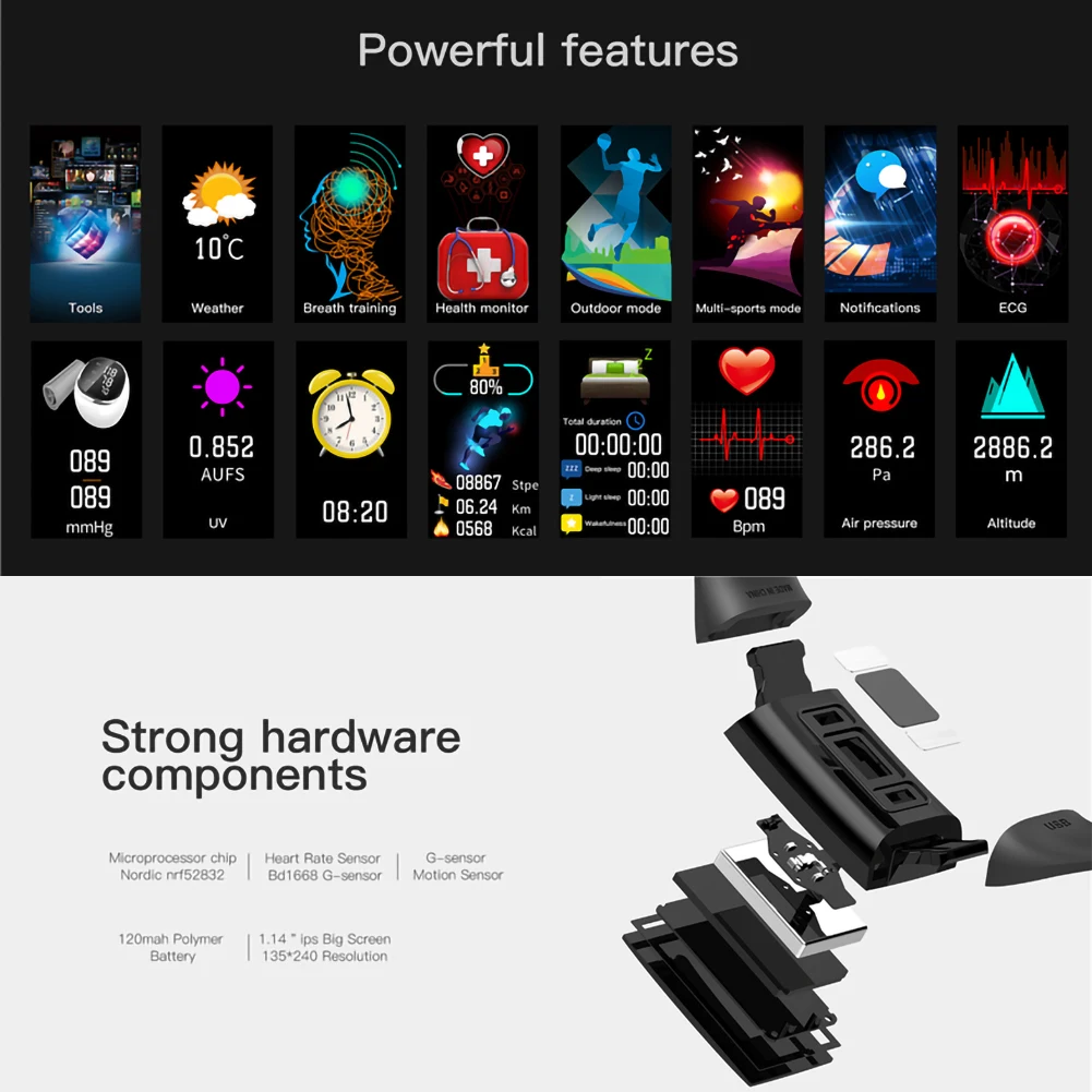 Other Functions: Support Pedometer,Alarm,Calender,Sedentary reminder,Camera remote control,Anti-lost,