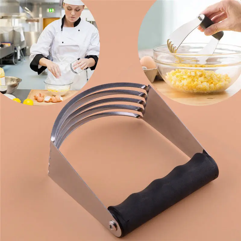Кухонный блендер для теста из нержавеющей стали-это кухонный инструмент, используемый для смешивания твердого (твердого) жира в муку, чтобы сделать выпечку.