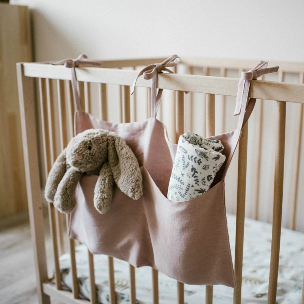 Подвесное белье для детской кроватки сумка для хранения подходит для подгузников, пустышек, прорезывателей, детских салфеток, подгузников или маленьких игрушек и многого другого, вы также можете хранить там игрушки, книги или все, что захотите.