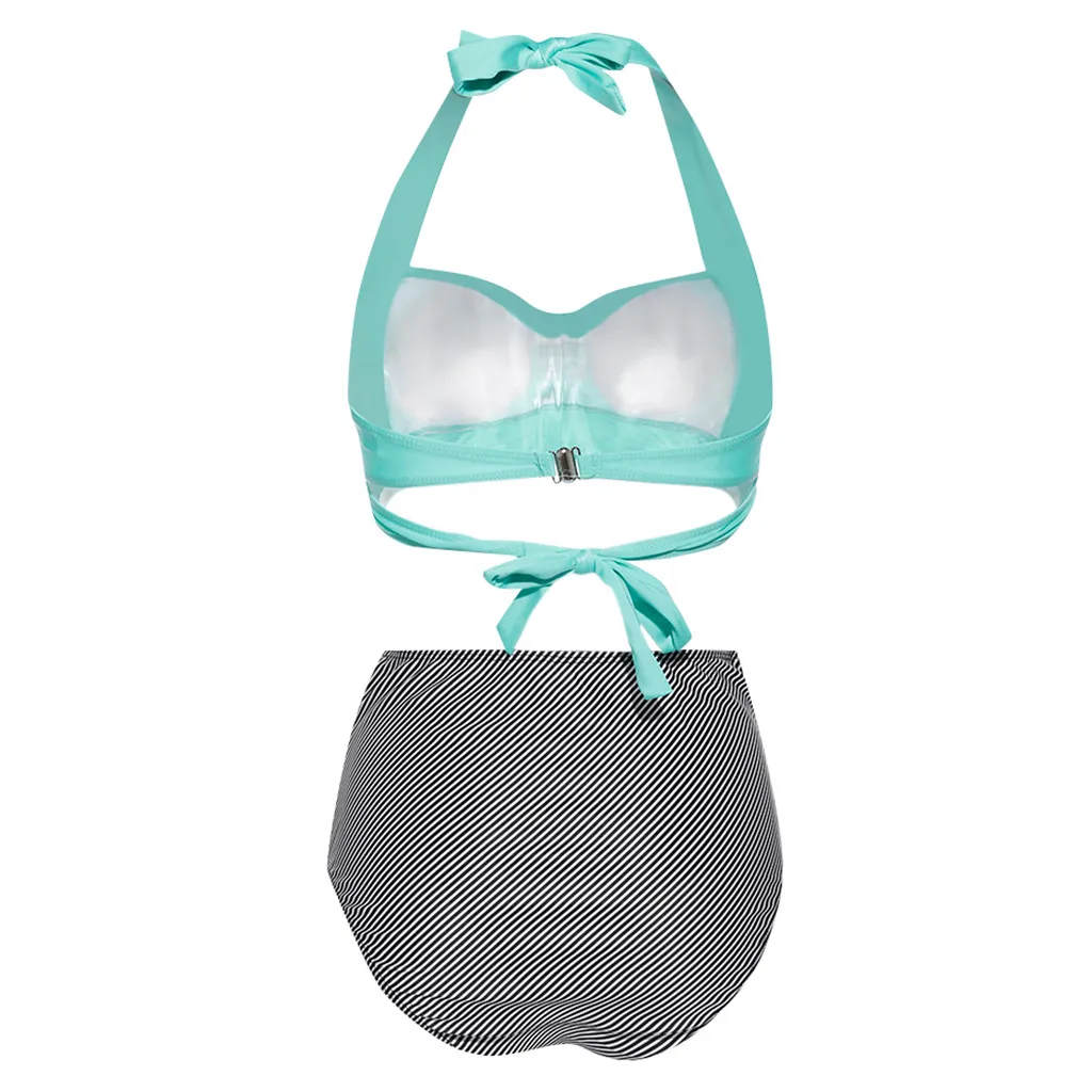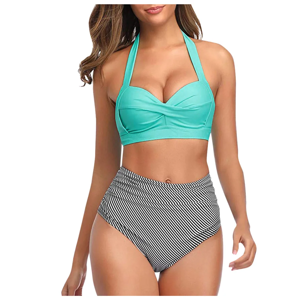 Женский винтажный купальник из двух частей, ретро бикини с высокой талией и рюшами