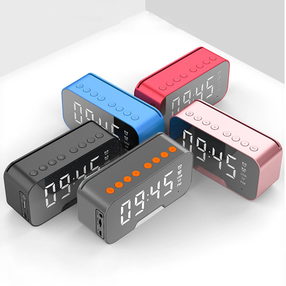 Многофункциональные зеркальные часы с будильником, Bluetooth динамик с fm-радио, светодиодный, зеркальный повтор, беспроводной сабвуфер, музыкальный плеер, настольные часы