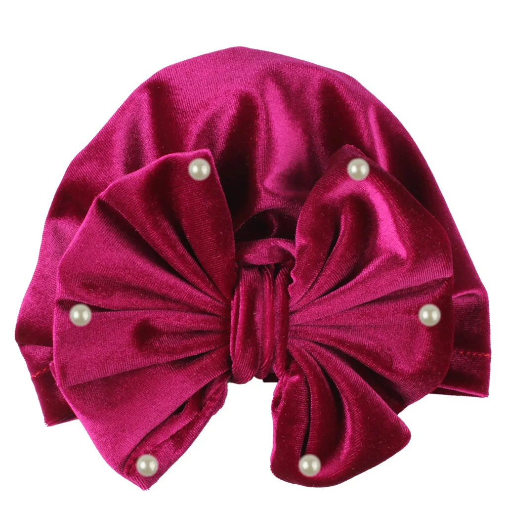 Новорожденный ребенок мальчик девочка жемчуг Pleuche узелковая шляпа теплый лук шапка головной убор шапка