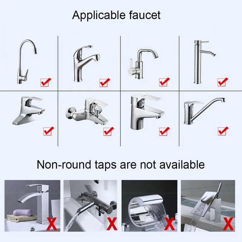 <Применение> может быть установлен на кухонный кран, кран для раковины, смеситель для туалета и смеситель для душа и многое другое.