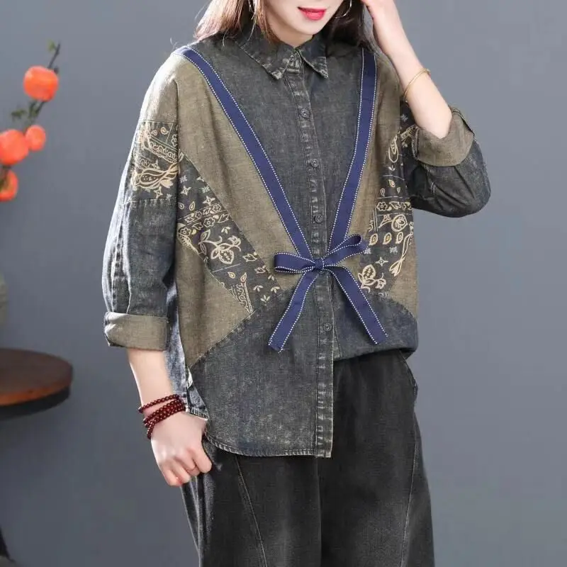 Весенние корейские модные Свободные повседневные джинсовые рубашки