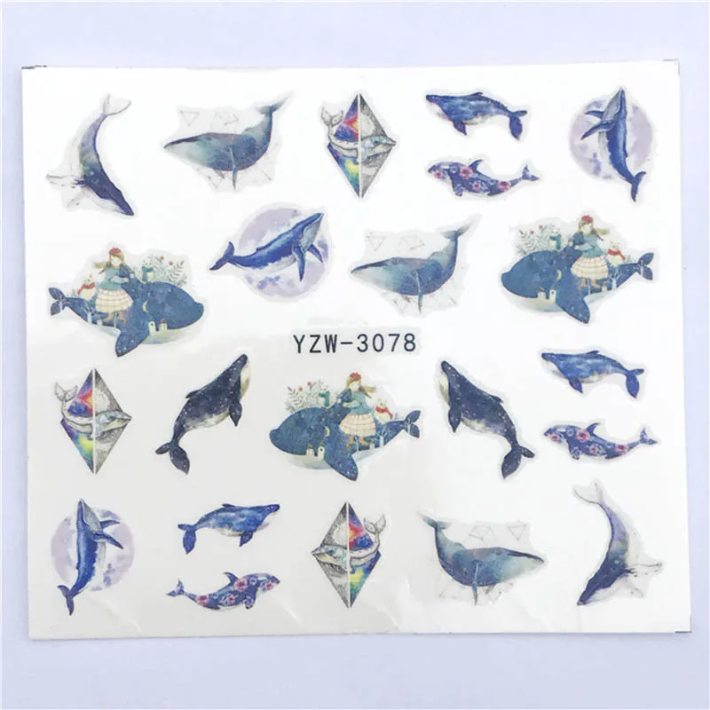 1 шт стикер для дизайна ногтей, цветной волк, фламинго, рыба, олень, ультратонкая печать, переводная вода, маникюр, слайдер, обертывания, украшение FW004