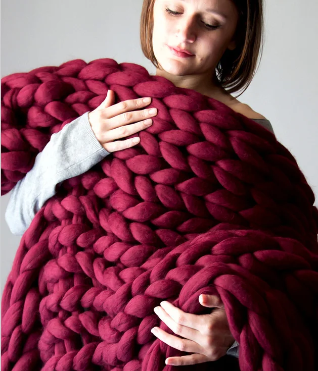 6 см одеяло крупной ручной вязки плотная пряжа шерсть-как полиэстер громоздкие вязаные одеяла зимние мягкие теплые пледы