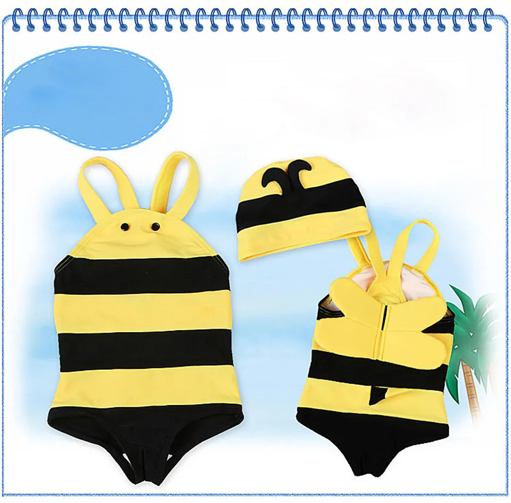 Toddler kids Baby Boy Girl Sleeveless Cartoon Beach Swimwear Straps Set Outfits