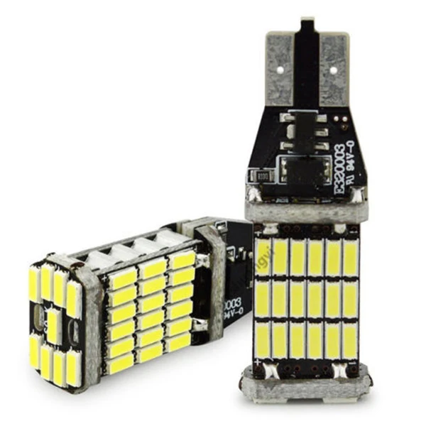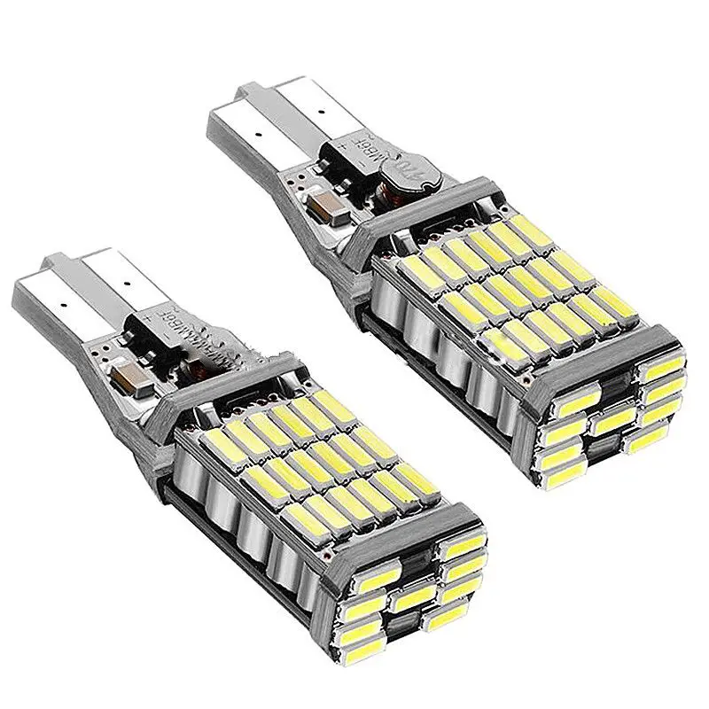 Тип светодиодный: T15 W16W 45 SMD 4014; Напряжение: 12 В; Мощность: 12 Вт; Перекрестные ссылки: w5W 194 147 152 158 159 161 168 175 184 192 193 259 280 285 447 464 555 558 585 655 656 657 1250 1251 1252 2450 2652 2921 2825 921 906 579