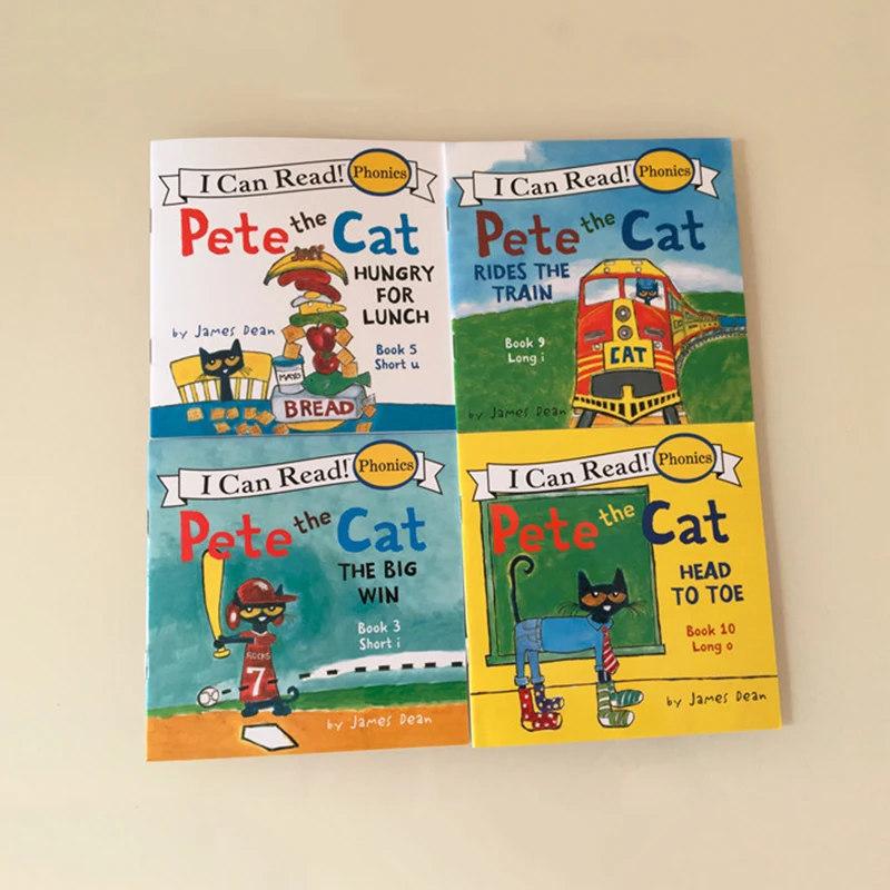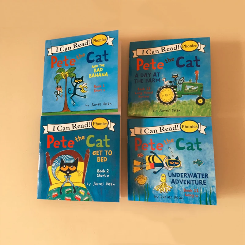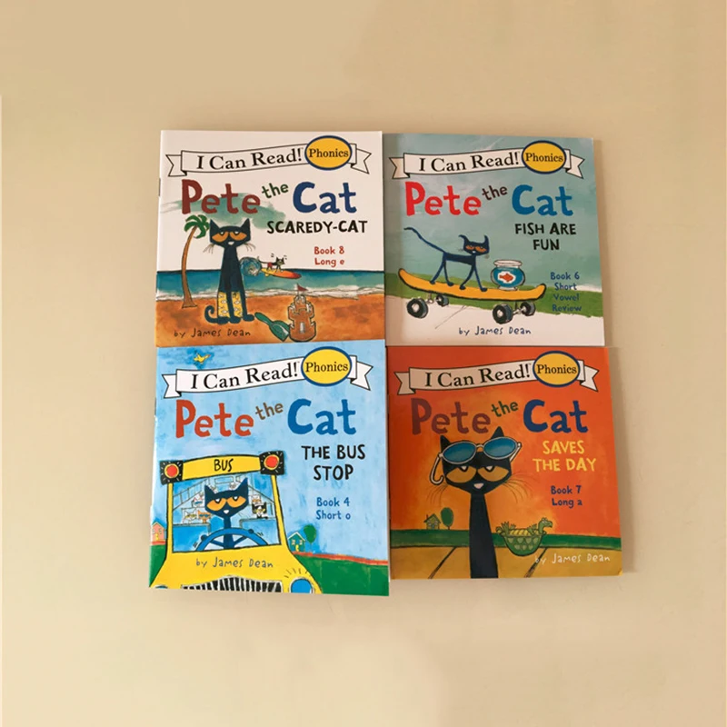 Детские книги с рисунками, 4 случайных книжки 13x13 см, детская серия с английским Питом и котом, Storybook Child IQ EQ, тренировка перед сном