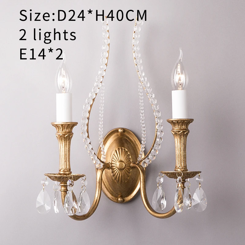 Винтажные золотые настенные светильники, хрустальные бусины, бра, французский античный светильник, прикроватный изголовье, спальня, роскошный настенный светильник для домашнего декора