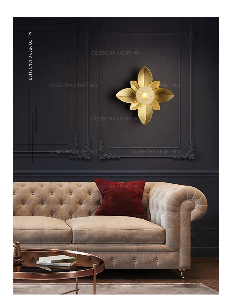 Уникальный настенный светильник-бра, украшенный цветами, медный декоративный латунный настенный светильник, элегантный благородный дизайн, лофт, Декор, бра для ванной комнаты, прикроватная лампа