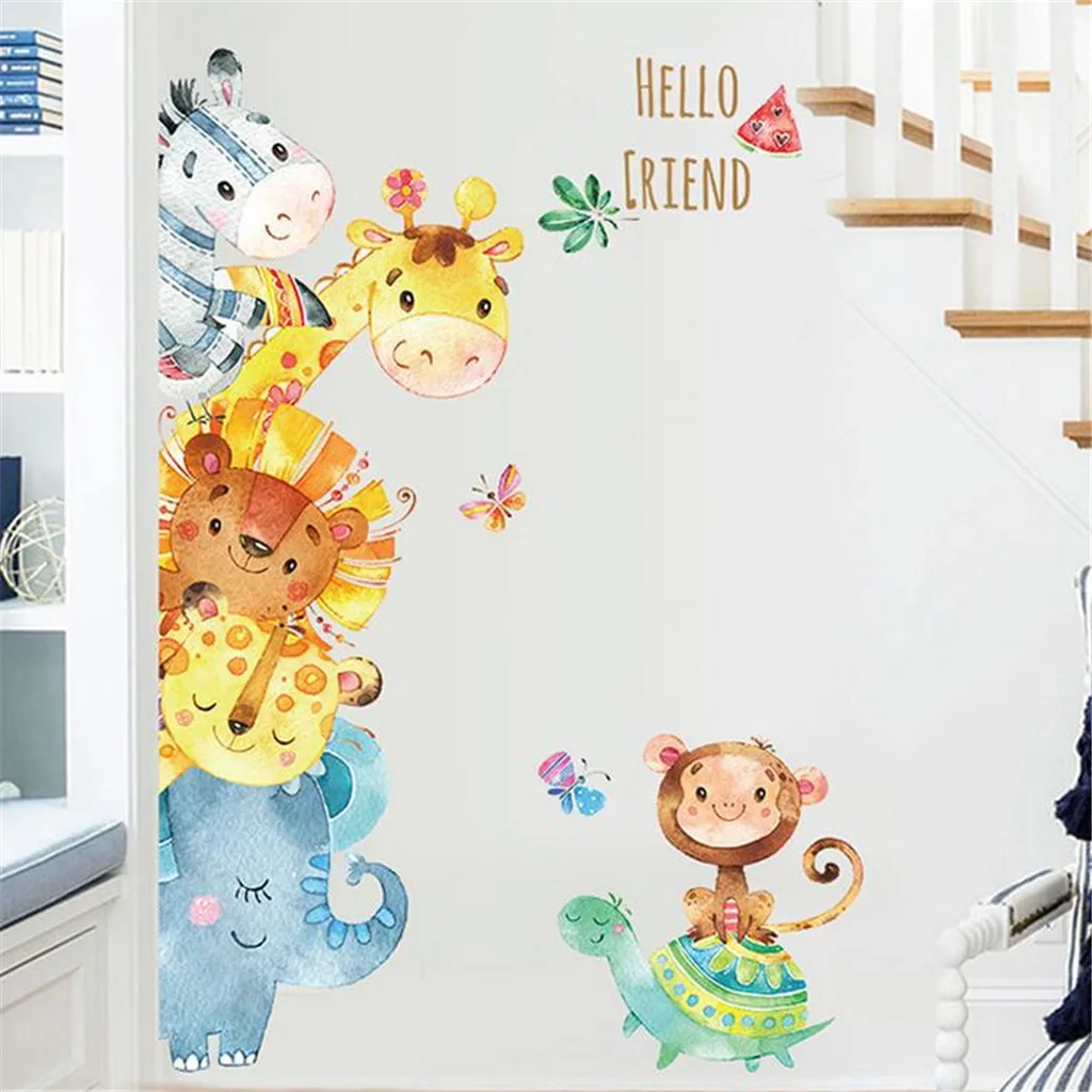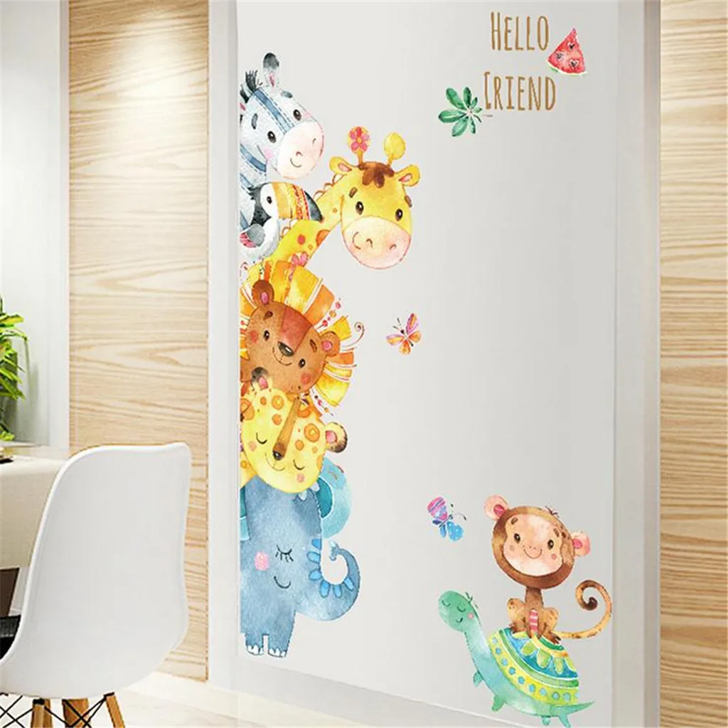 Мультяшные наклейки с животными ручной росписью, декоративные наклейки для детской комнаты