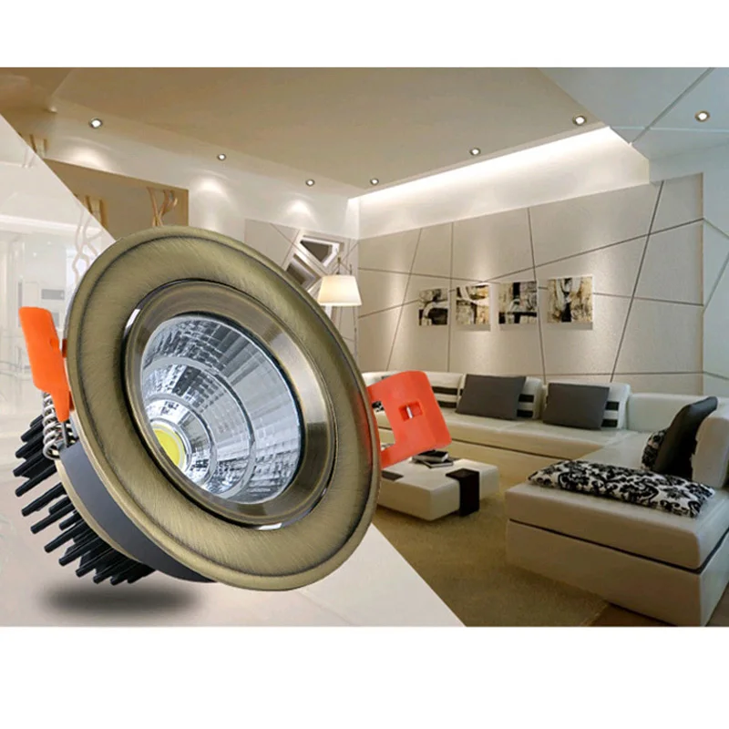 Светильник с регулируемой яркостью COB 3 Вт 5 Вт 7 Вт 9 Вт 10 Вт 12 Вт 15 Вт светодиодный потолочный светильник из бронзовой меди встраиваемый Точечный светильник, светильник для помещений AC110V 220 В
