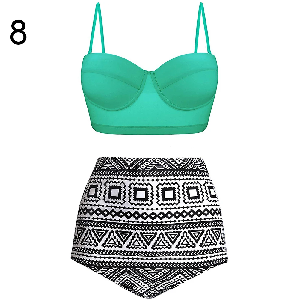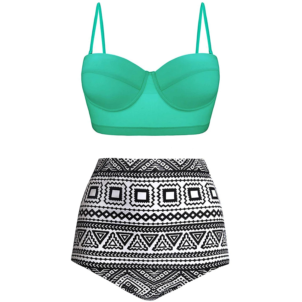 Женский купальник-бикини с рюшами и высокой талией, геометрический комплект из двух предметов