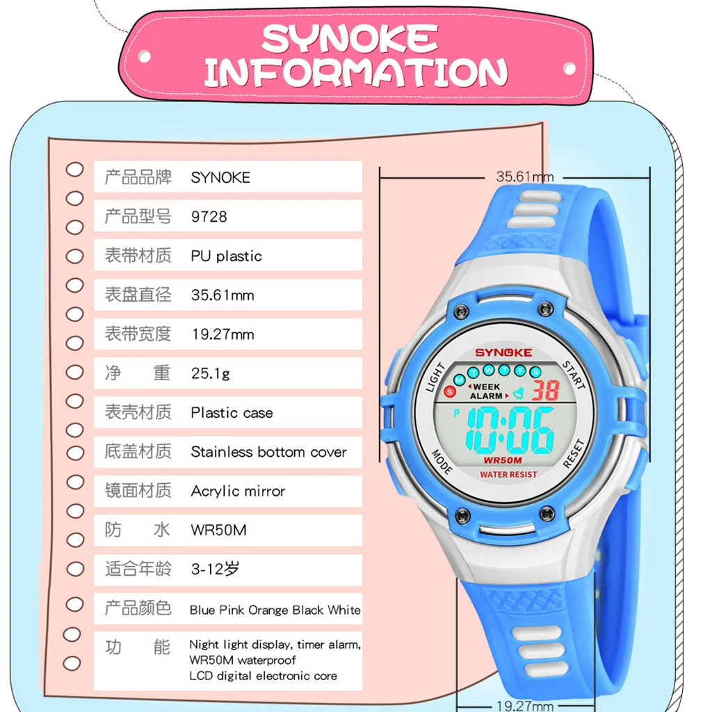 Студенческие спортивные многофункциональные водонепроницаемые электронные часы с сигнализацией на ночной Светильник