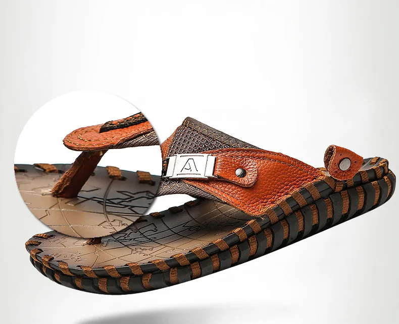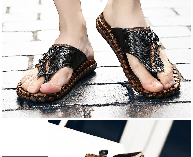 Вьетнамки; chanclas hombre; Летняя обувь; Мужские шлепанцы; Уличные кожаные тапочки; Новинка 2020 года; Повседневная обувь для мужчин; Мужские шлепанцы; Летние туфли на плоской подошве; Уличные тапочки; Кожаные вьетнамки мужские тапочки; Большие размеры; heren sloffen
