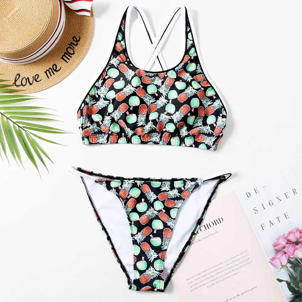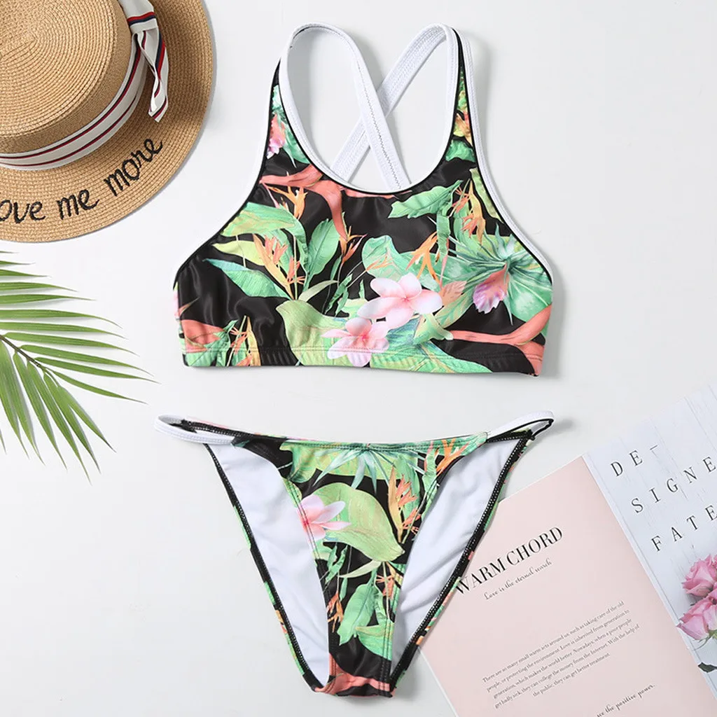 Женский модный сексуальный бандажный купальник с цветочным принтом, Раздельный купальный костюм
