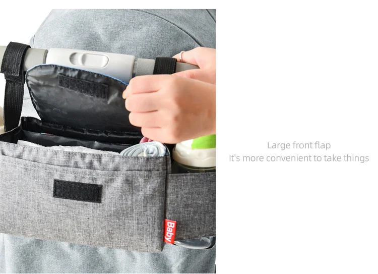 Он оснащен двумя толстыми ремешками, которые сидят на ручках коляски. Вы можете получить доступ к вашим товарам мгновенно. Вам не придется искать их в большом мешке для подгузников. Все идеально расположено на своем месте