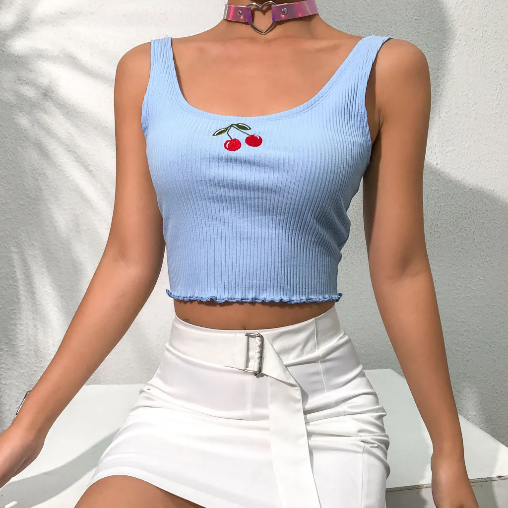 1. Особенности: женский топ, Повседневный, без рукавов, с воланом и вышивкой.Информация о продукте: