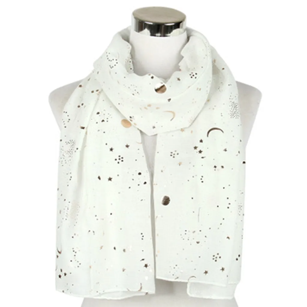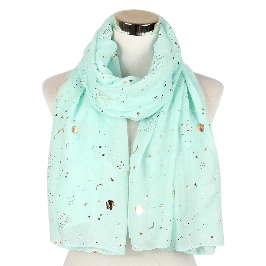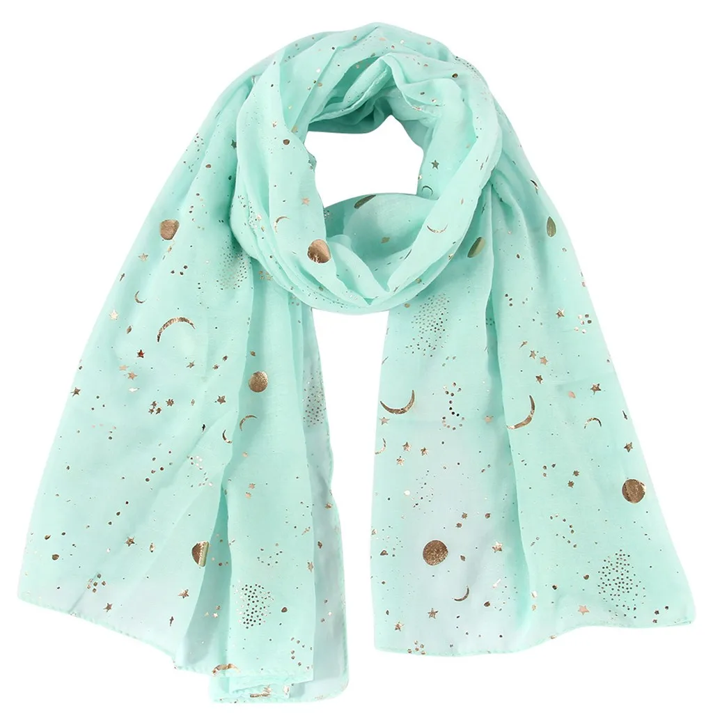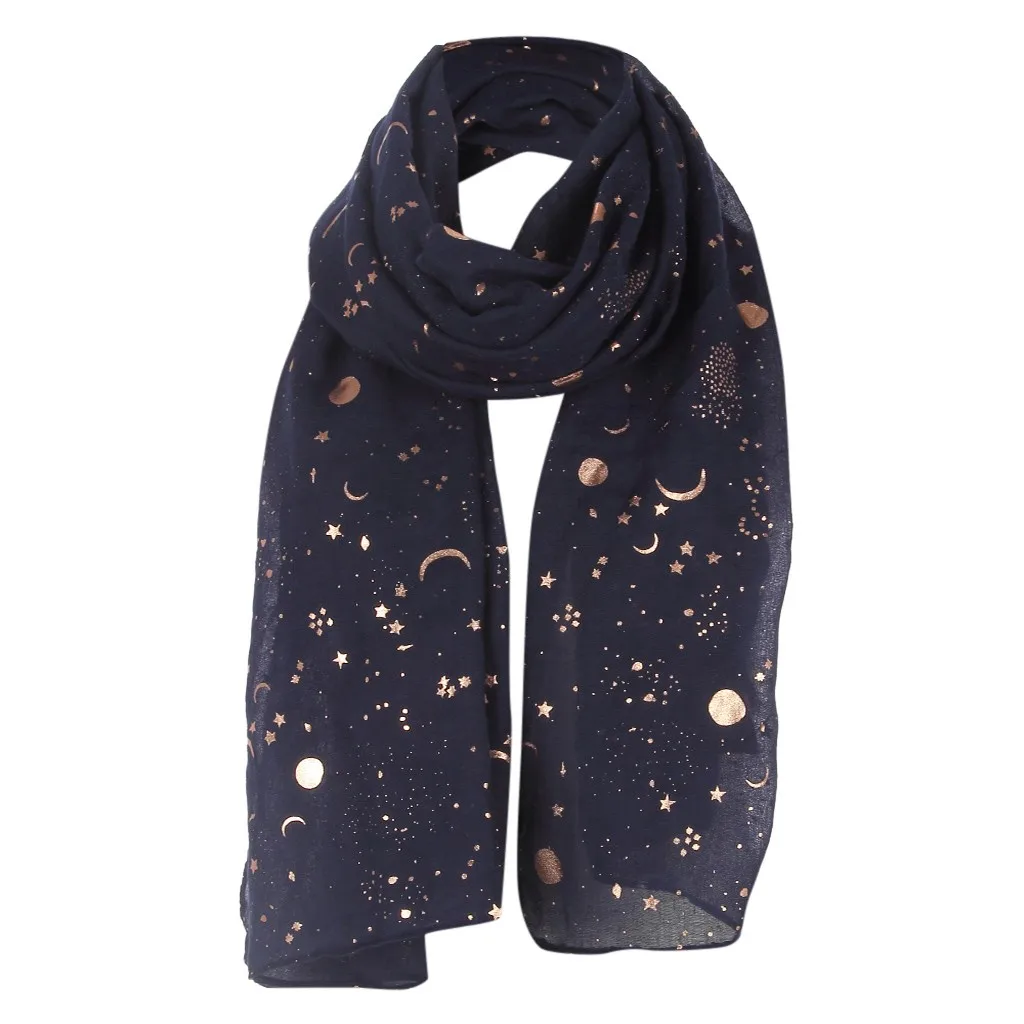 Модные тонкие шарфы, женские шали, черный, темно-синий, звезда, луна, фольга, золотой шарф, шаль для женщин, женская мягкая накидка, хиджаб, бандана, Прямая поставка