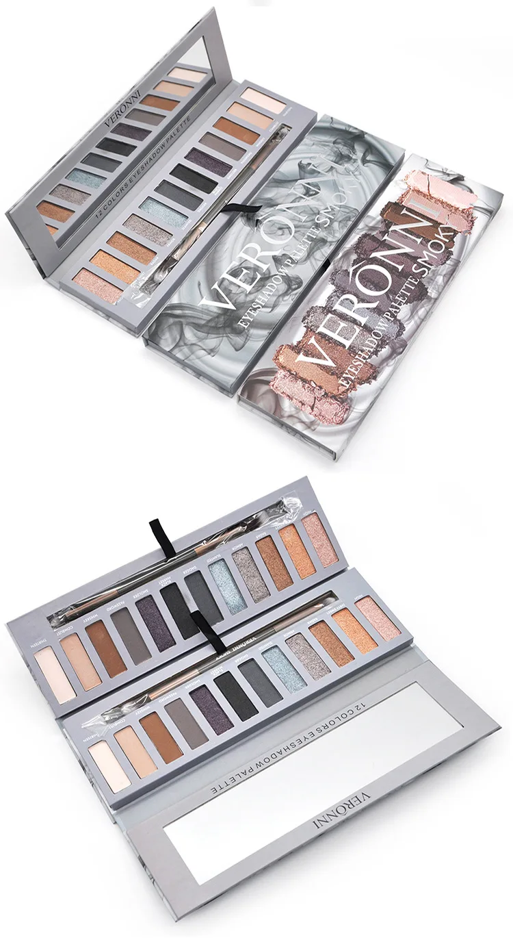 VERONNI, 12 цветов, дымчатые тени, обнаженные, стойкие матовые тени для век, мерцающий пигмент, косметика, блеск, палитра