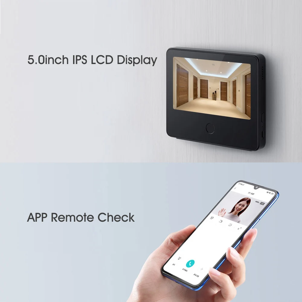 Умная камера Mijia дверной звонок имеет компактный размер и 5-дюймовый ЛСД экран с разрешением Full HD, поддерживает ночная съемка, распознавать лица системы, охранников двусторонняя голосовая связь и функция изменения голоса хоста при общении с гостем за дверью.