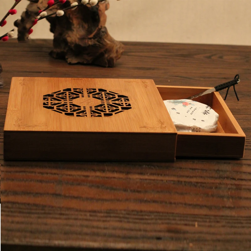 Name: wooden kung fu tea tray storage box pu 'er tea box tea bag engraved tea cake box diy container
