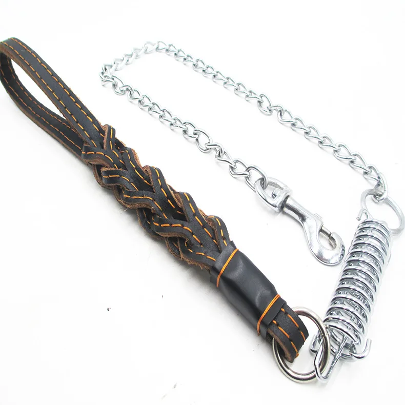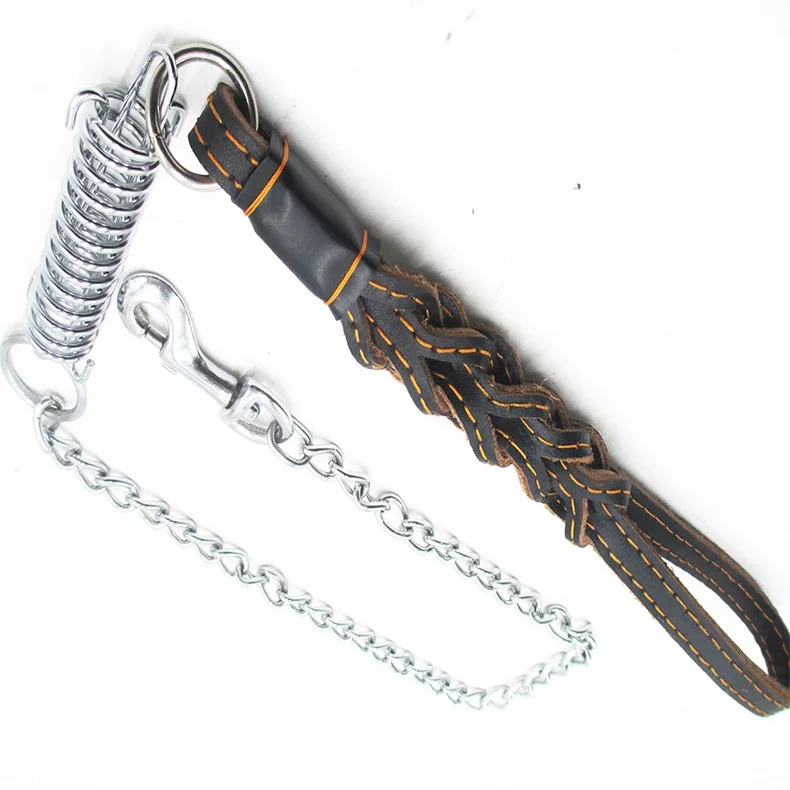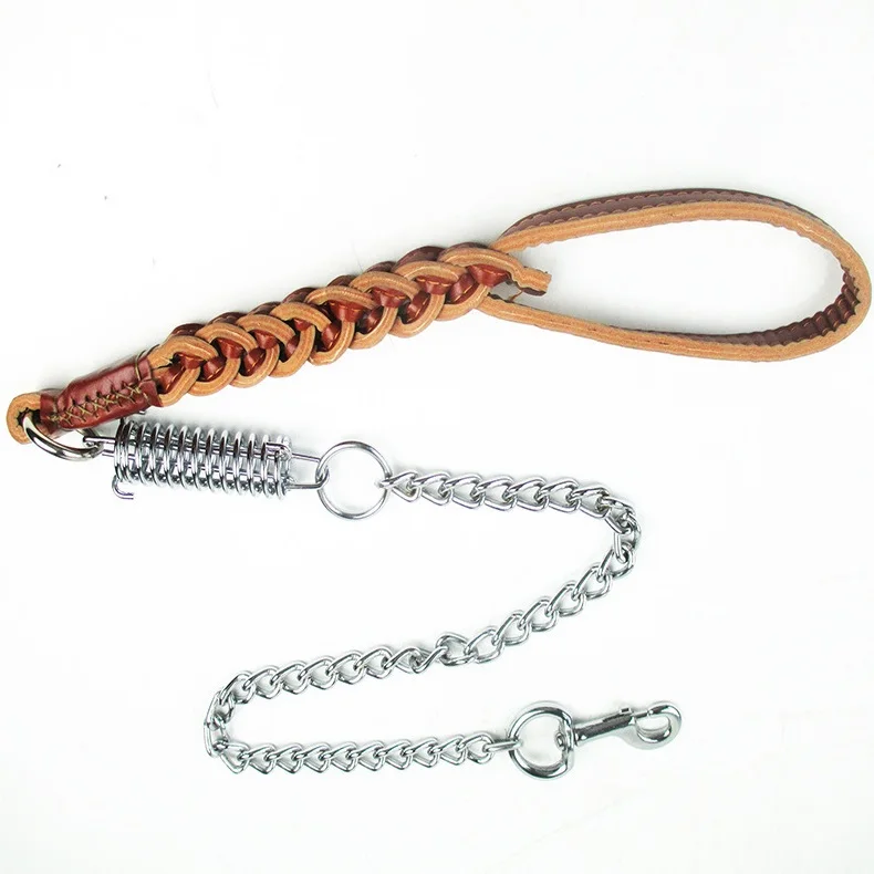 Мягкая натуральная кожа большой поводок для собак цепь из нержавеющей стали большая собака поводок для домашних животных трос для немецкой овчарки золотистый ретривер собак
