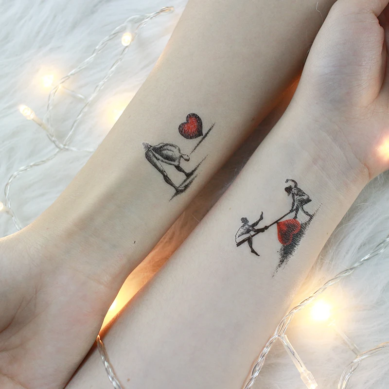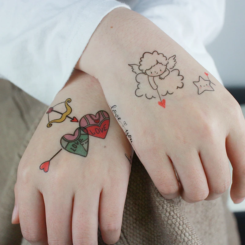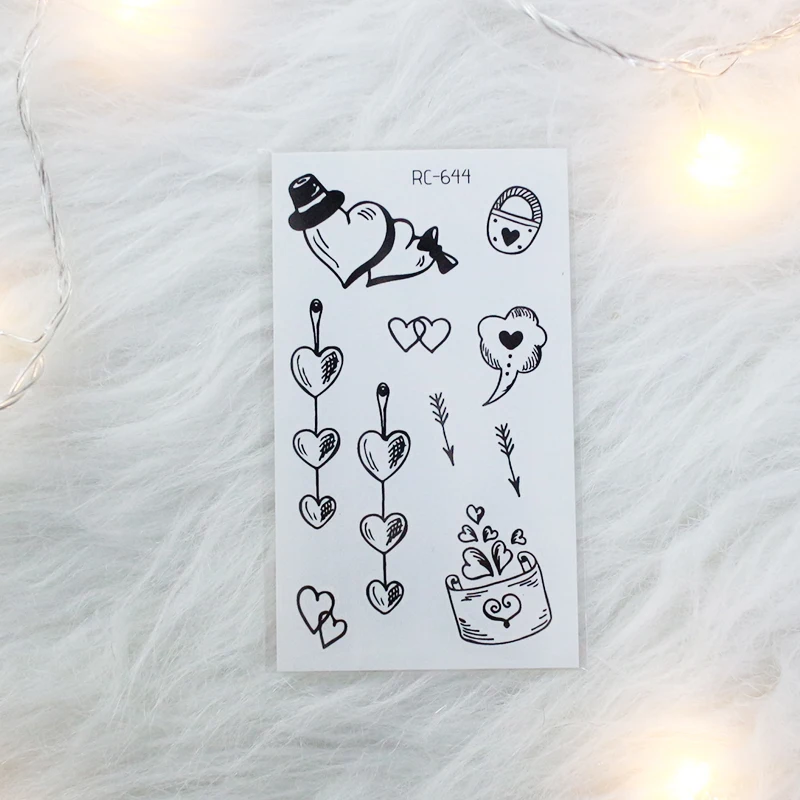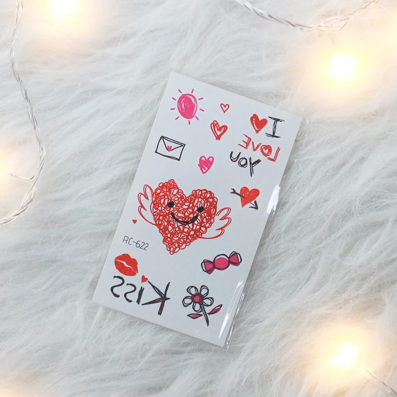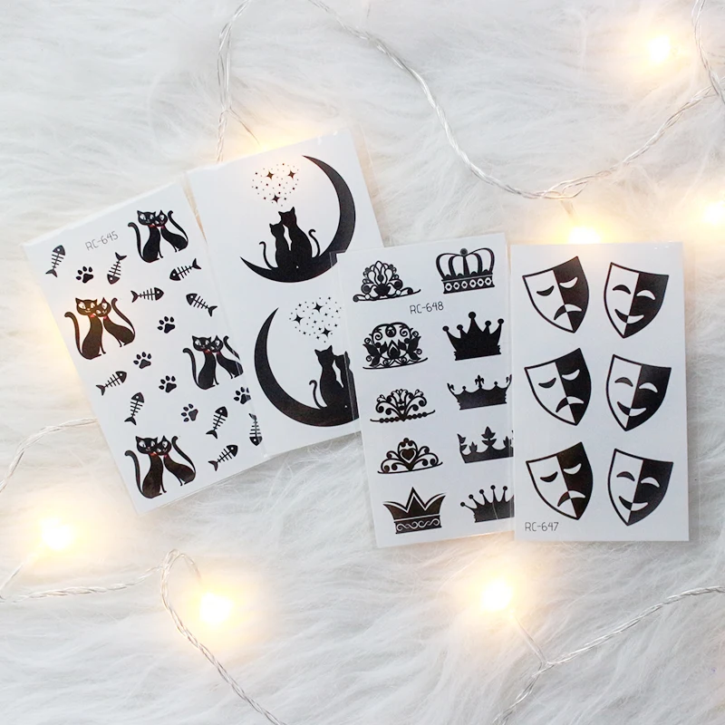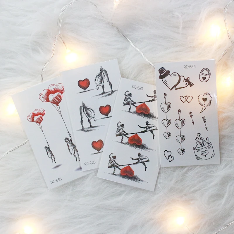 Наклейки для тату для влюбленных на День святого Валентина, украшение в виде сердца, черная кошка, маска, печать, переводная вода, Временные татуировки, наклейки RA067