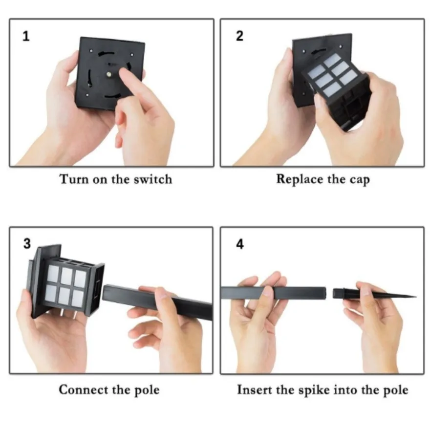 • Светодиодные фонари на солнечных батареях, водонепроницаемые уличные солнечные фонари для сада, ландшафтного сада, дорожки, двора, подъездных дорожек • Простота установки: Включите переключатель под крышкой и втолкните кол в почву. Эти солнечные фонари автоматически включаются ночью и выключаются на рассвете! • Первоклассный наружный декор: эти наружные садовые фонари могут быть легко украшены и добавить восхитительное свечение к подъездной дорожке, патио или цветным клумкам. • Энергосбережение: не требуется электричества; поглощает солнечный свет для зарядки. Светодиодный светильник, заряжаемый солнечным светом в течение 4-6 часов, может обеспечить освещение в течение 6-8 часов. • Устойчивость к погодным условиям: подходит для использования на улице, не беспокойтесь о дожде, снеге, морозе или сане. Параметры • Материал: АБС-пластик • Батарея: 1,2 В/1 никель-металл-гидридная аккумуляторная батарея AAA (Предустановленная) • Солнечная панель: 2 в 40 мА Пожалуйста, обратите внимание 1 шт. • золотистый шарик в форме цифры «. если светильник не работает при первом использовании, включите светильник, а затем поставьте его под солнце на 6-12 часов. светильник должен снова работать после его подзарядки. • 2. Шипов осветительных приборов в перевернутом положении в трубке. Пожалуйста, выньте их перед первым использованием