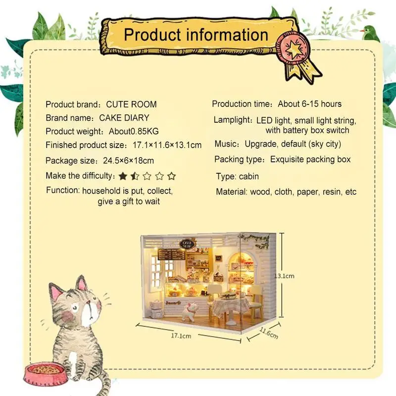 Миниатюрный DIY кукольный домик, мебель, игрушки, ручная сборка, модель, принцесса, комната, торт, дневник, домик, дети, игрушки на день рождения