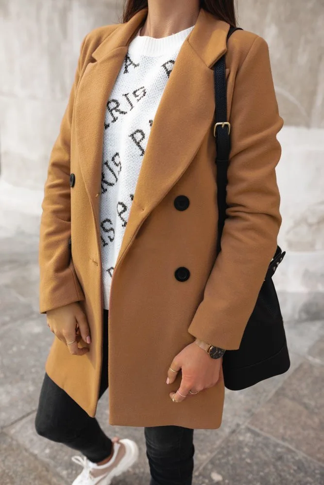 Женская шерстяная куртка с воротником и двумя пуговицами, с длинными рукавами, 2019