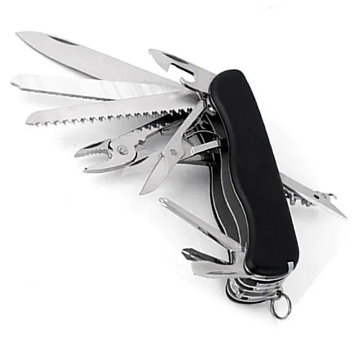8. Сверлильный конус 9. Кольцо для ключей 12. Деревянная пила 13. 14. Ножницы 15. Длинная крестовая отвертка, ножовка 16. Стальные пилки 17. 18. Плоскогубцы, прикрепленные кусачки для проводов 19. 20. Инструмент для удаления проволоки, отвертка Phillips