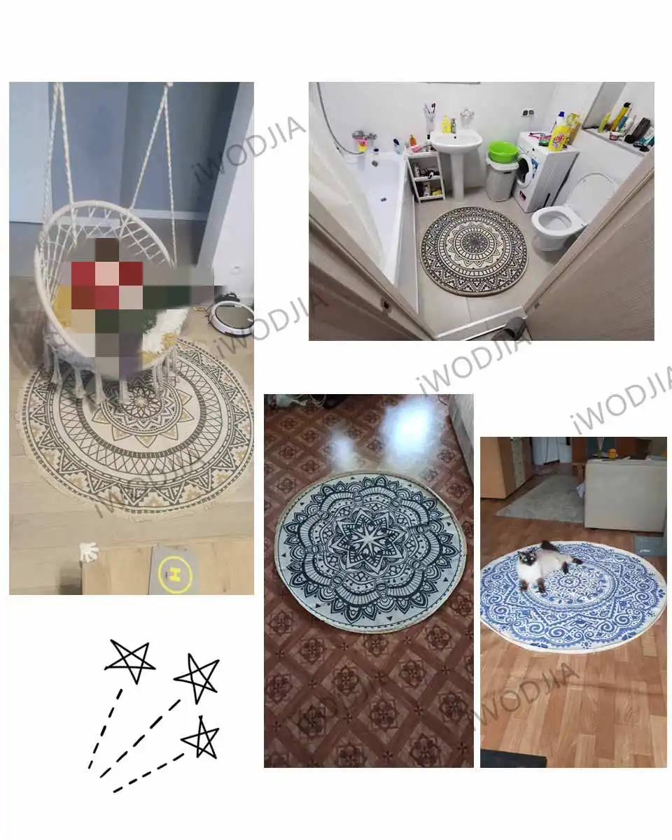 Название: круглый ковер в скандинавском этническом стиле для спальни, богемский тканый хлопковый ковер, вязаный напольный коврик 90 см, 120 см, 150 см