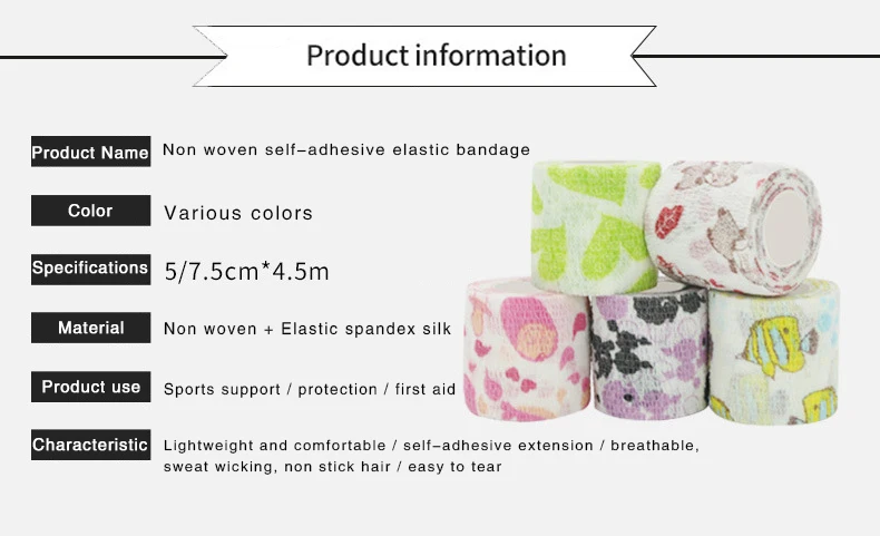 Цветной эластичный самоклеющийся Бандаж с мультяшным принтом для домашних животных