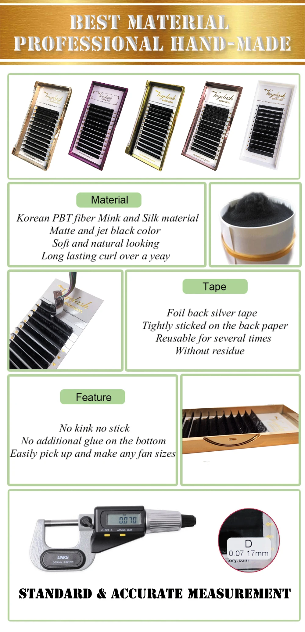 1. Цветочные ресницы, также называемые объемными ресницами и магнитной камелии, являются усовершенствованным расширением ресниц, очень легко сделать поклонников без каких-либо технологий и сделать процесс прививки более быстрым, который очень популярен среди многих косметологов. 2. Завивка может длиться долгое время, и есть очевидная водонепроницаемость. Ресницы такие же мягкие и легкие, как и наши собственные ресницы. Удобная одежда. Материал не вредит вашей коже или глазам. 3. Ресницы сделаны вручную из корейского матового черного шелкового материала PBT. Мягкие и легкие, без остатков, шелковые ресницы легко снимаются с полосок, а полоски также легко выбираются из основы. Принадлежности для наращивания ресниц для салона и профессионального художника ресниц. Параметры:★Материал: ПБТ-волокно, мягкий, черный★Curl: C D DD★Толщина: 0,03 0,05 0,07 мм.★Длина: 9-15 мм и смешанный.★Смешанная Длина: 9*1, 10*1, 11*2, 12*2, 13*2, 14*2, 15*2 в одном лотке. Почему выбирают Veyelash: мы являемся одним из крупнейших производителей в Циндао Китае, у нас есть собственный дизайн и производственная команда, посвященная разработке и производству новых продуктов с оптовой ценой и последовательной гарантией качества.★★★Индивидуальные частные этикетки и пакеты доступны