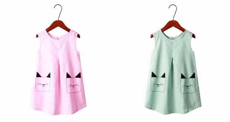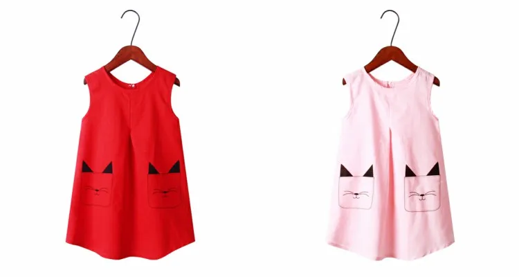 cat print style color green red dresses for kids girls