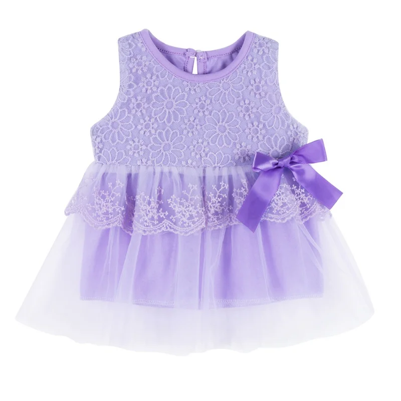 Детское кружевное платье принцессы розовое с бантом и бусинами для крещения на 1